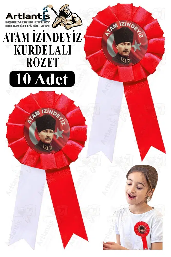Ürün Adı: Artlantis Atam İzindeyiz Atatürk Kurdelalı Rozet 10 Adet Kırmızı Beyaz Yaka Rozeti Çocuk Bayram Etkinlik 15 cm Kokart