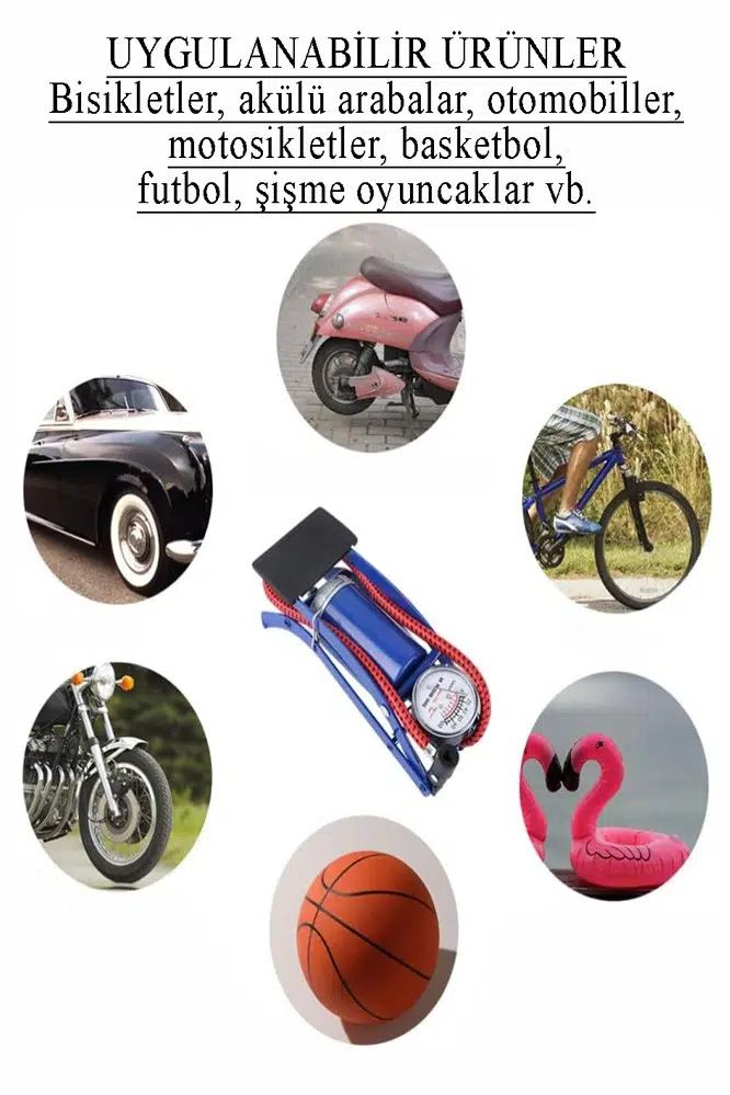 ·Geniş Uygulama Alanı: Çok işlevli ve çeşitli cihazlara uygun olan bu ayak pompası, araba ve bisiklet lastiklerinin yanı sıra oyuncakları, topları ve havuz aksesuarlarını zahmetsizce şişirir.