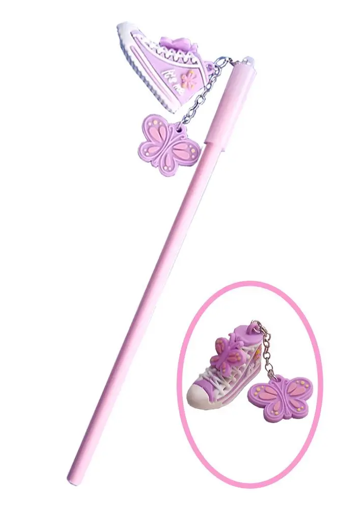 Ürün Adı: Ayakkabı Başlıklı Kurşun Kalem Pembe 1 Adet Ayakkabılı Kelebekli Kurşun Kalem Hediye Kalem Figürlü Sevimli Kalem