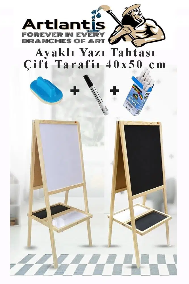 Ürün Adı: Ayaklı Yazı Tahtası Çift Taraflı 40x50cm 1 Adet Çocuk Yazı Tahtası Alıştırma Tahtası