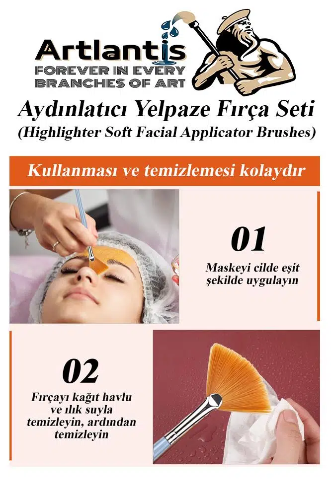 - Bu yumuşak yüz makyaj fırçaları, pudrayı yüzünüze eşit şekilde yayan yelpaze şeklinde tasarlanmıştır, kıllar, sağlam ve dayanıklı, kırılması kolay olmayan, bu fırçanın sapının uzunluğu olan pürüzsüz akrilik sapla birleştirilmiştir.