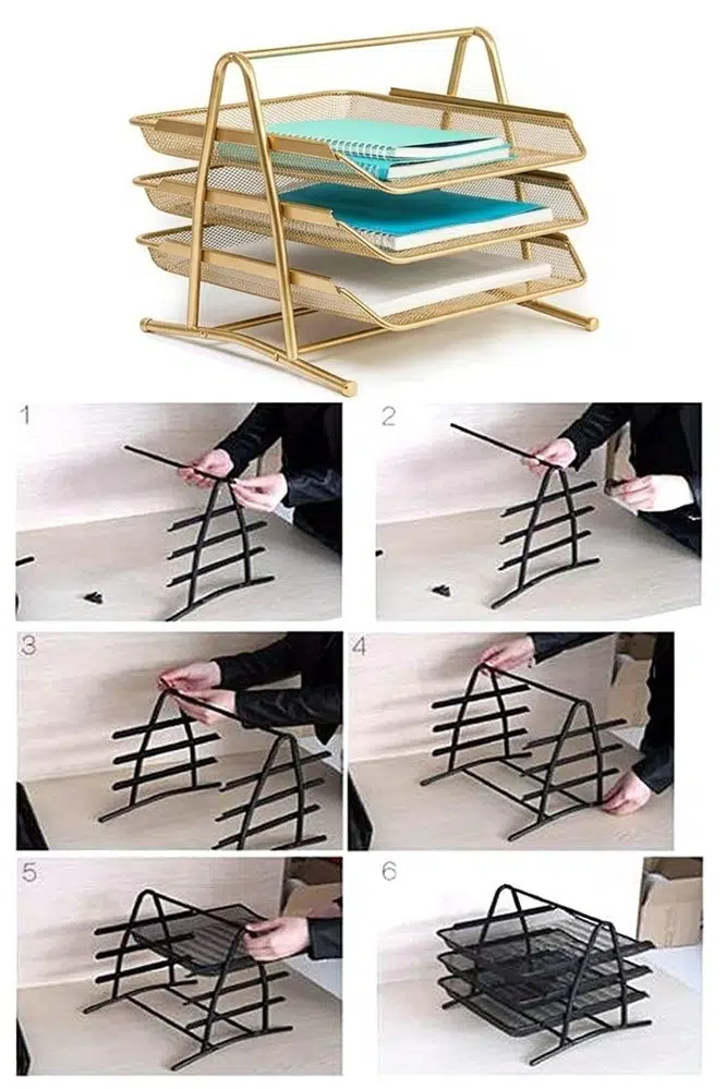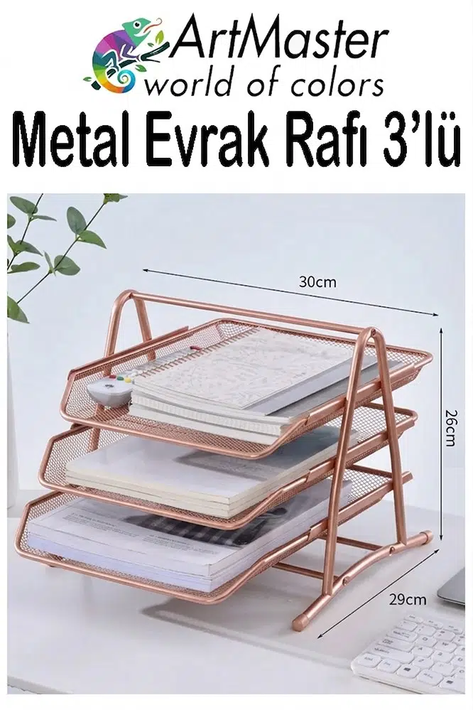 Ürün Adı: Artmaster Bakır Yaldız Metal Evrak Rafı 3 lü 1 Paket Masaüstü A4 Dosya 3 Katlı Düzenleyici Kağıt Tepsisi Metal Fileli Hareketli