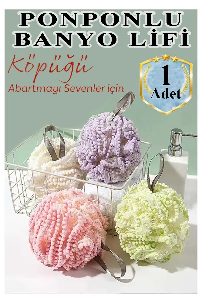 Ürün Adı: Banyo Lifi Ponponlu 1 Adet İnce Fileli Esnek ve Yumuşak Banyo Lifi Duş Banyo Kesesi Kaliteli Top Lif