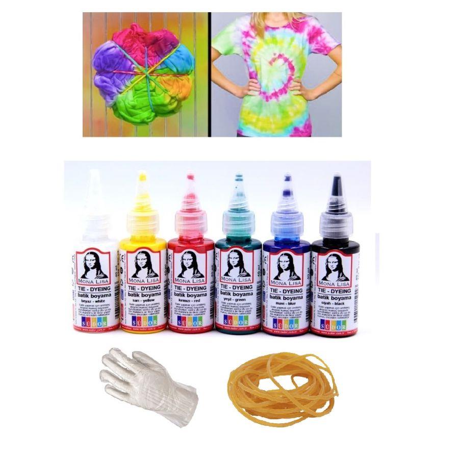 Ürün Adı: Batik Boyama Seti 6x40 ml Poşet Eldiven 10 Adet ve Para Lastik 20 Adet Set Monalisa Boyama Seti