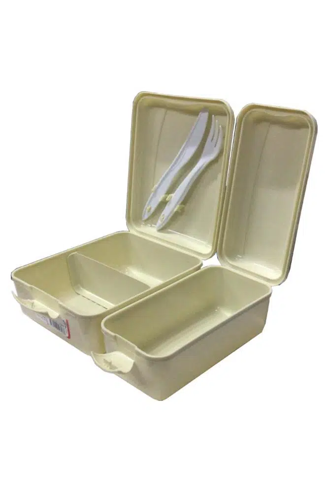 Ürün Adı: Beslenme Kutusu 2 Bölmeli Krem Renk 1 Adet Yemek Saklama Kabı Beslenme Çantası 17x22 cm
