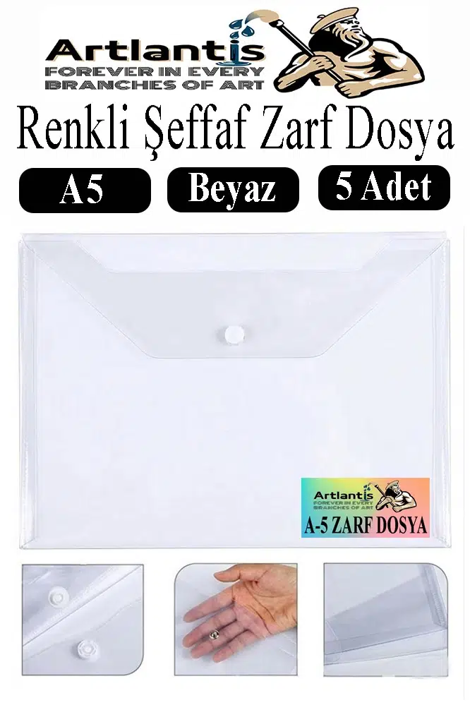 Ürün Adı: Beyaz A5 Çıtçıtlı Dosya Şeffaf Renkli Zarf Dosya 5 Adet 17x22 cm Çıt Çıtlı Dosya Su Geçirmez 50 Yaprak Kapasiteli