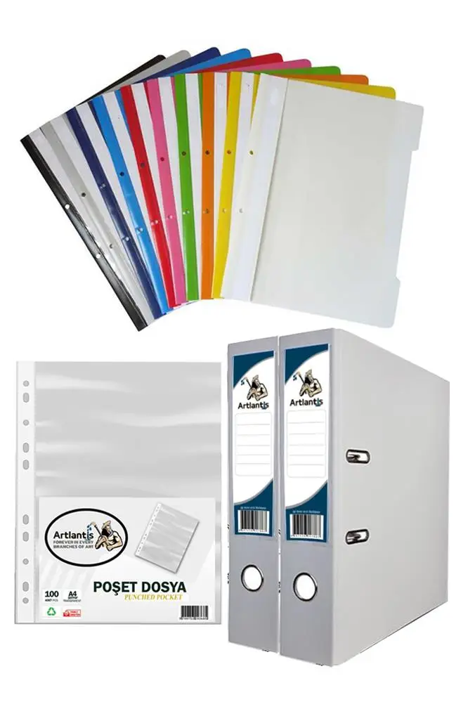 Ürün Adı: Beyaz Büro Klasörü Telli Dosya ve Poşet Dosya Seti 2 Adet Büro Klasörü 10 Renk Telli Dosya 100 Adet Poşet Dosya
