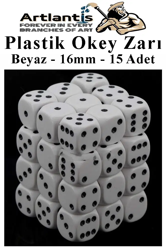 Ürün Adı: Beyaz Okey Zarı 15 Adet Beyaz Renkli Oyun Zarı Plastik Akrilik 16 mm Şeffaf Zar Masa Oyunları Zarı Eğlence