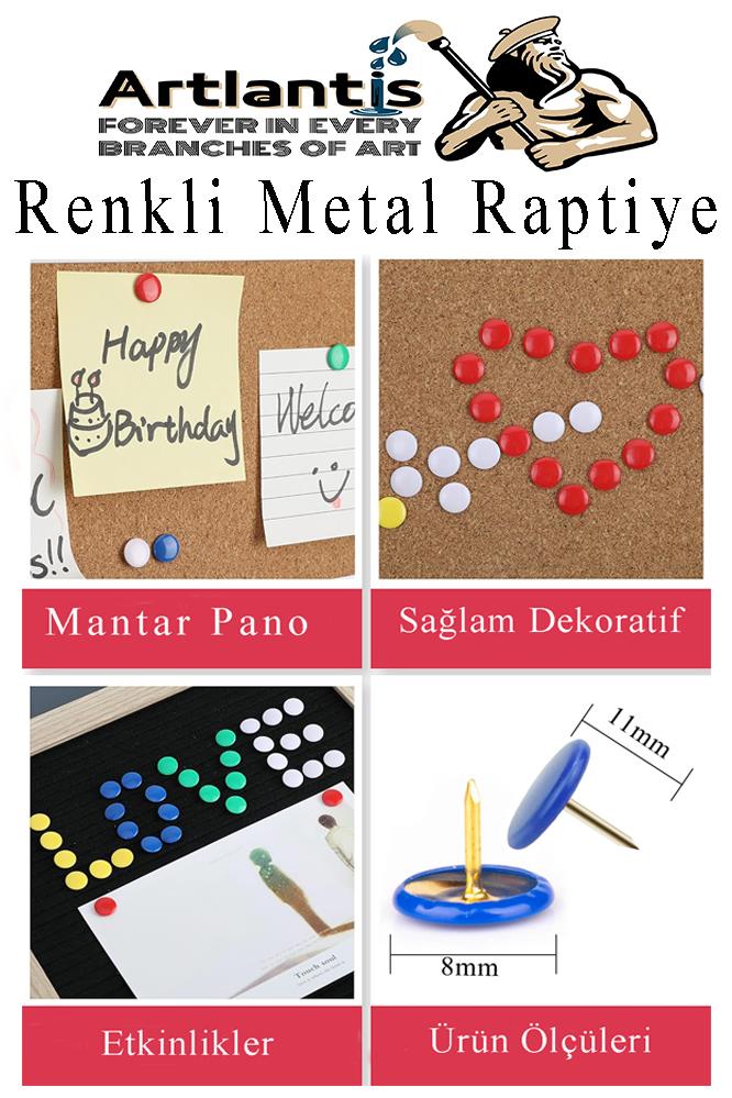 Ürün Adı: Beyaz Raptiye 100 Adet 1 Paket Renkli Pvc Kaplı Başlıklı Raptiye Plastik Yuvarlak Düğmeli Raptiye Pano Okul Ofis Büro Ev