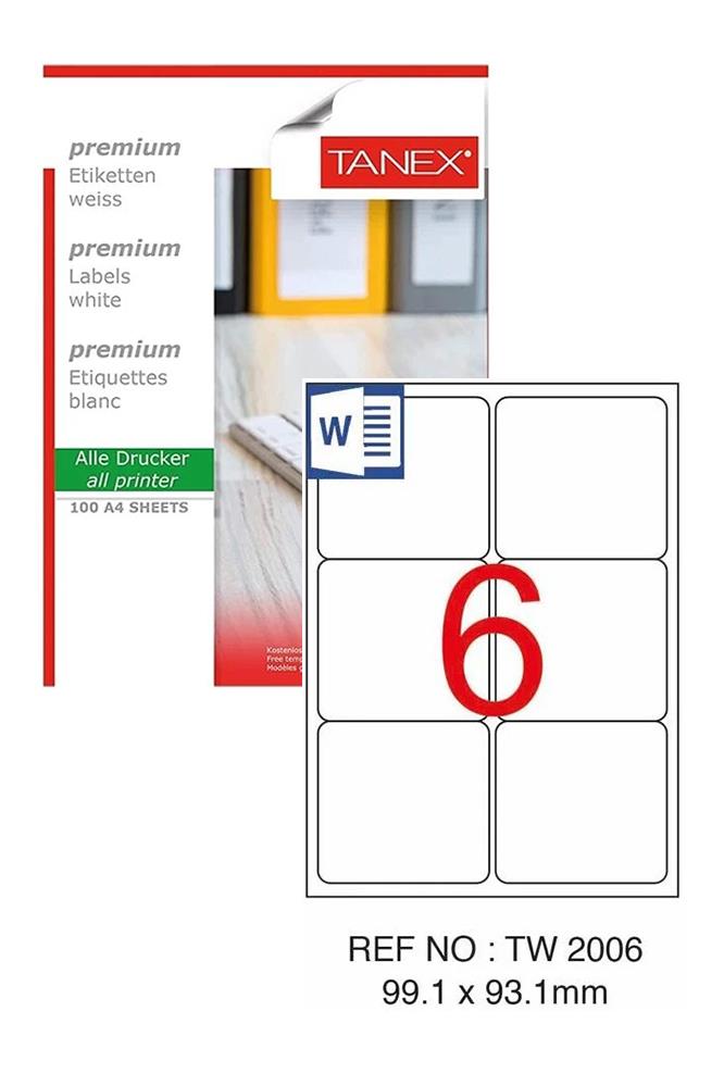 Ürün Adı: Tanex Bilgisayar Etiketi 99,1x93,1 mm Tw 2006 1 Paket 100 Lü