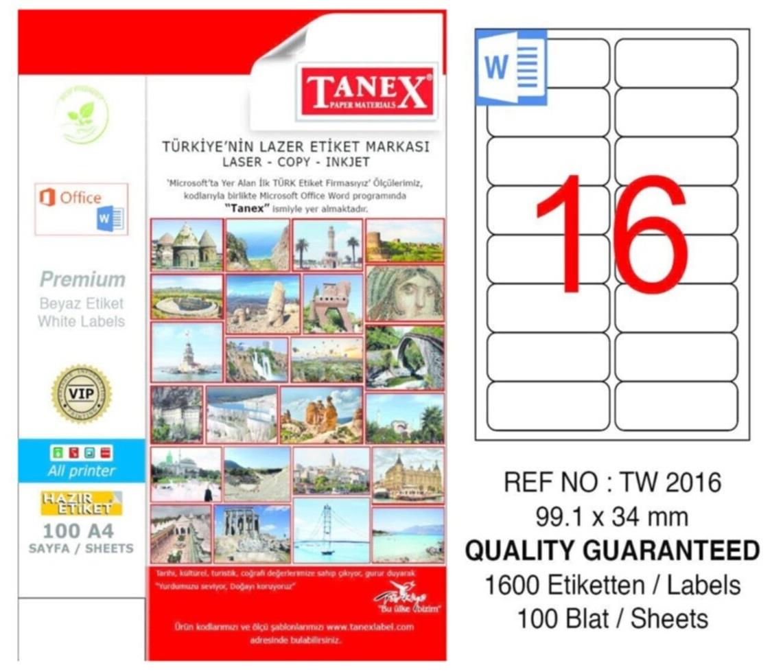 | Etiketler | Bilgisayar Etiketi Tw-2016 99.10x34 mm 100 Lü Lazer Etiket 1 Paket Tanex Davetiye Kargo Etiketi |