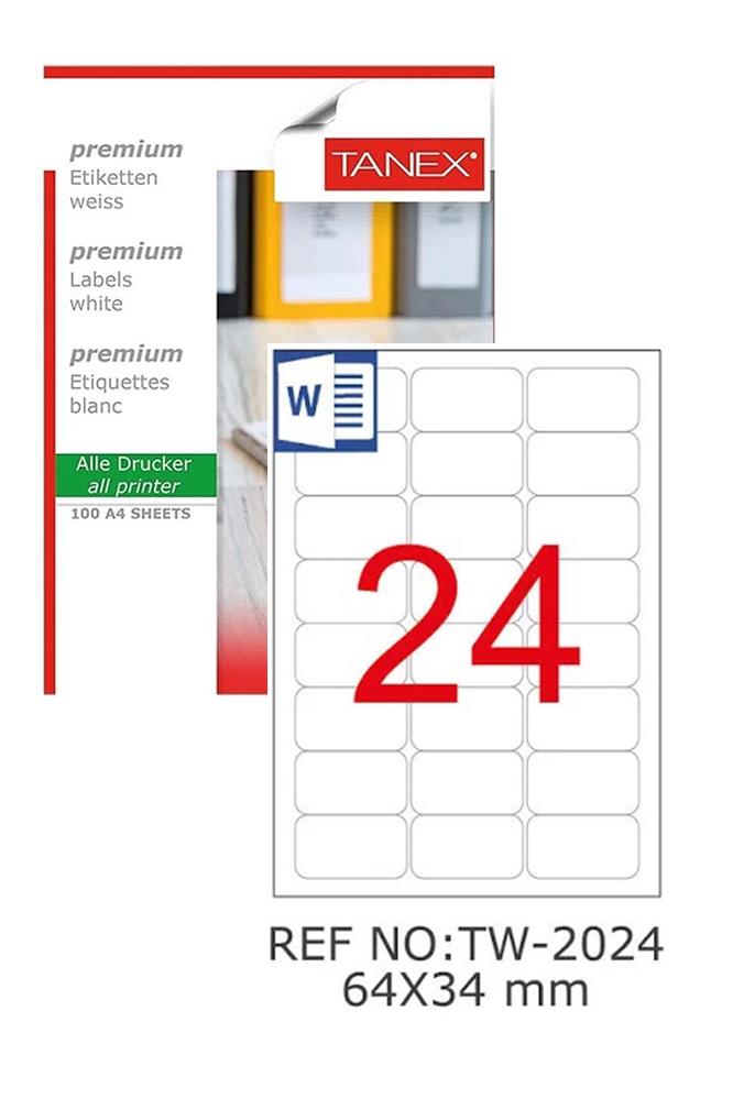 Ürün Adı: Tanex Bilgisayar Etiketi 64x34 mm Tw 2024 Paket 100 Lü