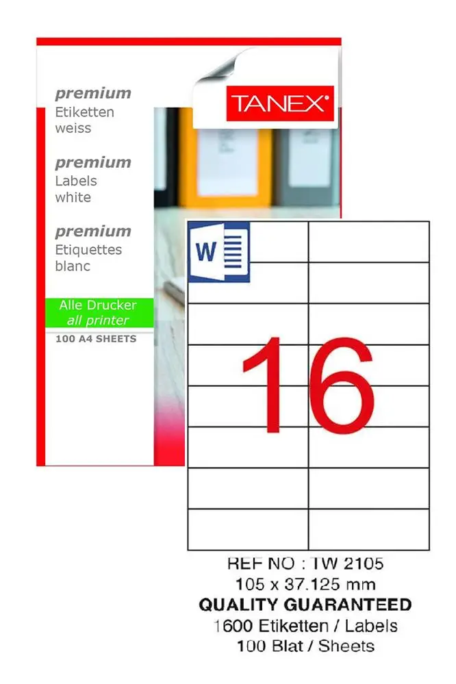 | Etiketler | Bilgisayar Etiketi Tw-2105 105x37,125 mm 100 Lü Lazer Etiket 1 Paket Tanex Davetiye Kargo Koli Kutu Etiketi |
