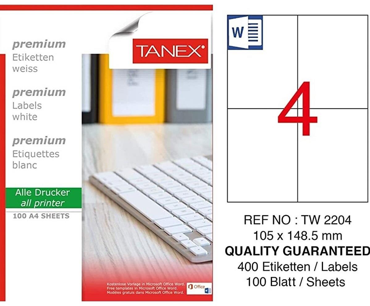 | Etiketler | Bilgisayar Etiketi Tw-2204 105x148,50 mm 100 Lü Lazer Etiket 1 Paket Tanex Davetiye Kargo Etiketi |