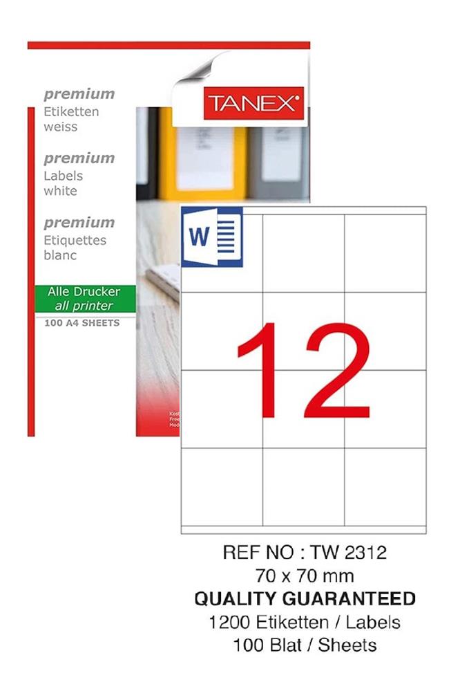 Ürün Adı: Tanex Bilgisayar Etiketi 70x70 mm Tw 2312 Paket 100 Lü