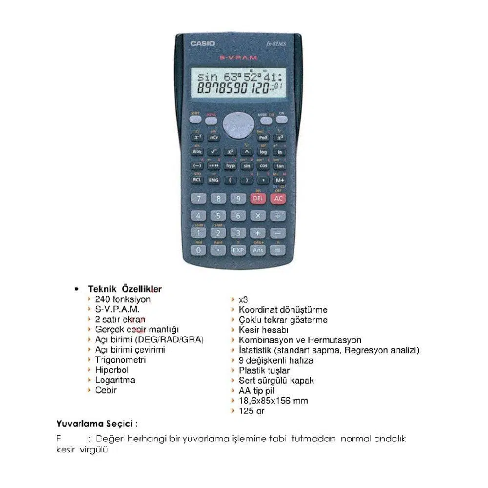 Ürün Adı: Bilimsel Fonksiyonlu Hesap Makinesi Fx-82ms 1 Adet