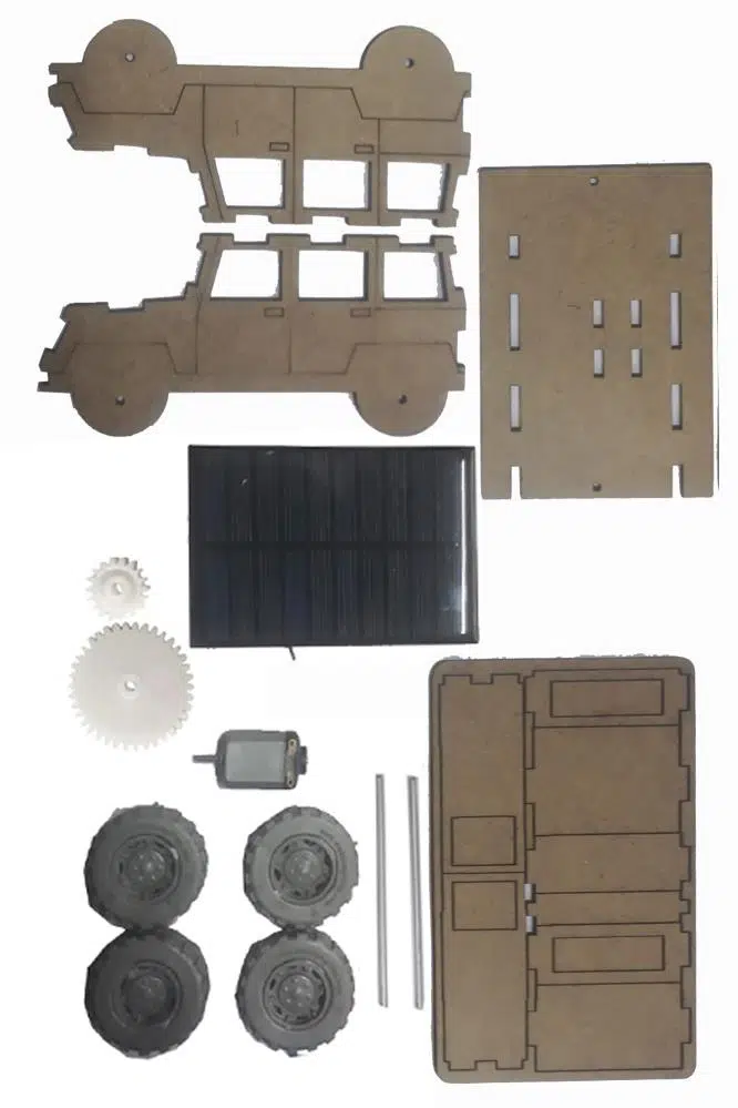 - Dc motor 1 adet araba maketi mdf 14 parça Dişli çark 1er adet Şaft 2 adet