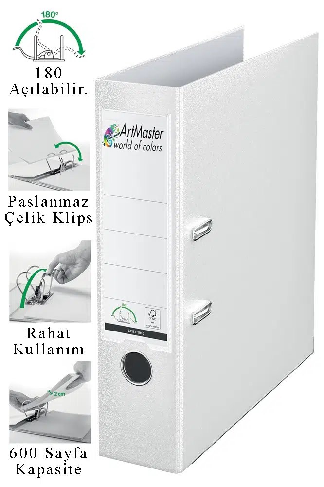 Ürün Adı: Artmaster Büro Klasörü Beyaz Geniş 1 Adet Plastik Geniş Beyaz Klasör Halkalı Paslanmaz Çelik Klipsli Ofis Büro