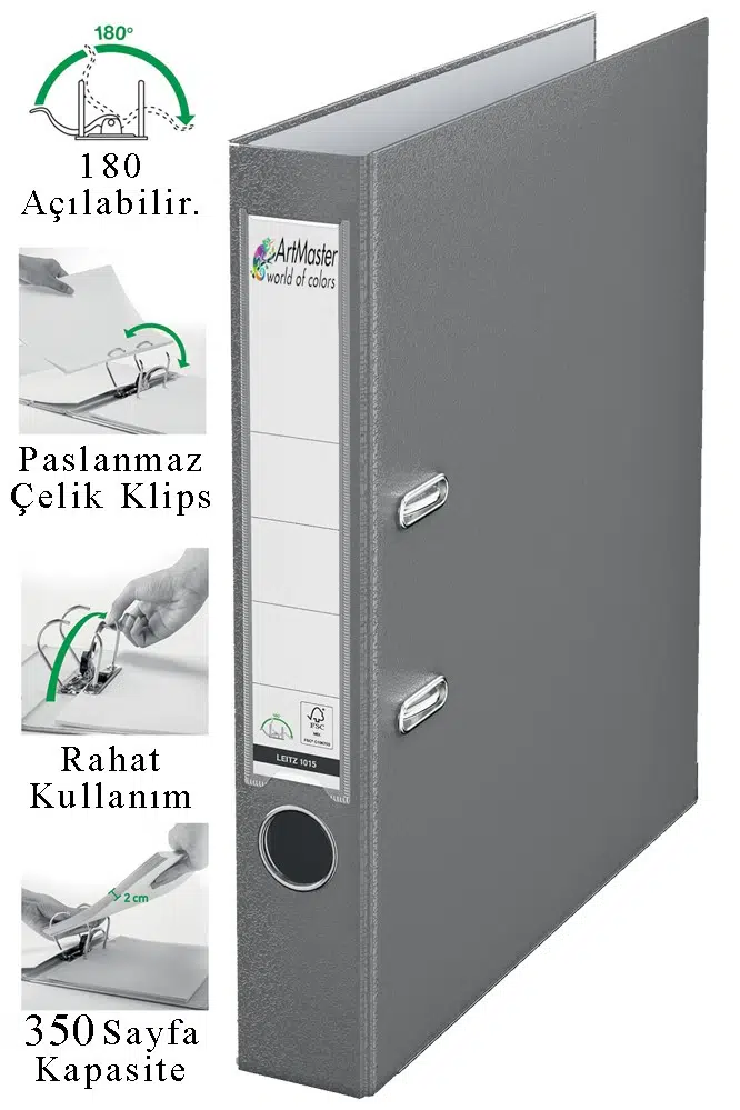 Ürün Adı: Artmaster Büro Klasörü Gri Dar 1 Adet Plastik Dar Gri Klasör Halkalı Paslanmaz Çelik Klipsli Ofis Büro