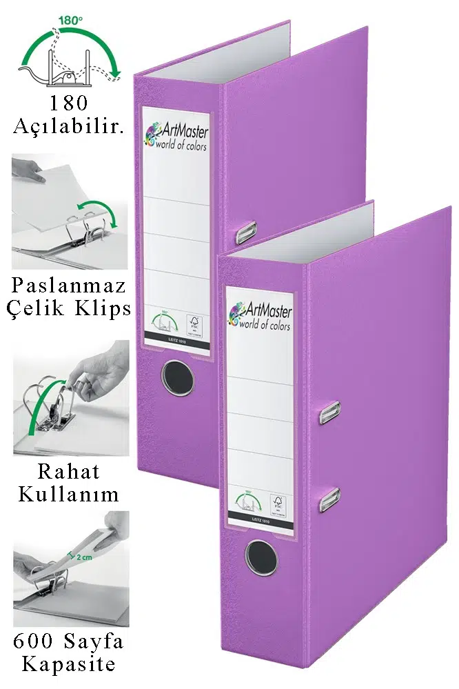 Ürün Adı: Artmaster Büro Klasörü Lila Geniş 2 Adet Plastik Geniş Lila Klasör Halkalı Paslanmaz Çelik Klipsli Ofis Büro
