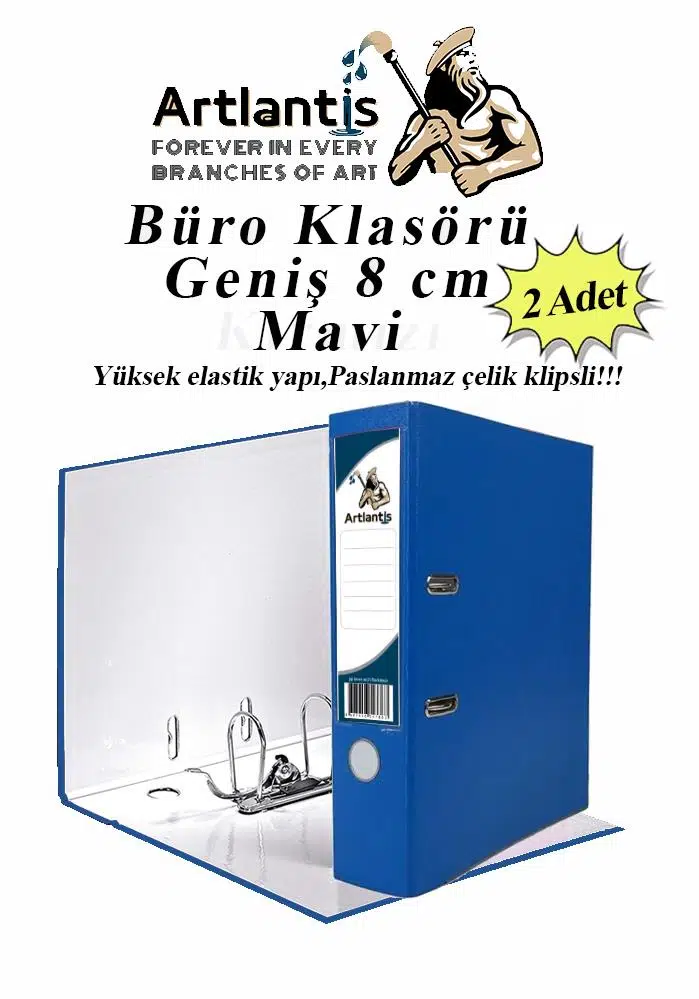 Ürün Adı: Artlantis Mavi Büro Klasörü Geniş Halkalı 2 Adet