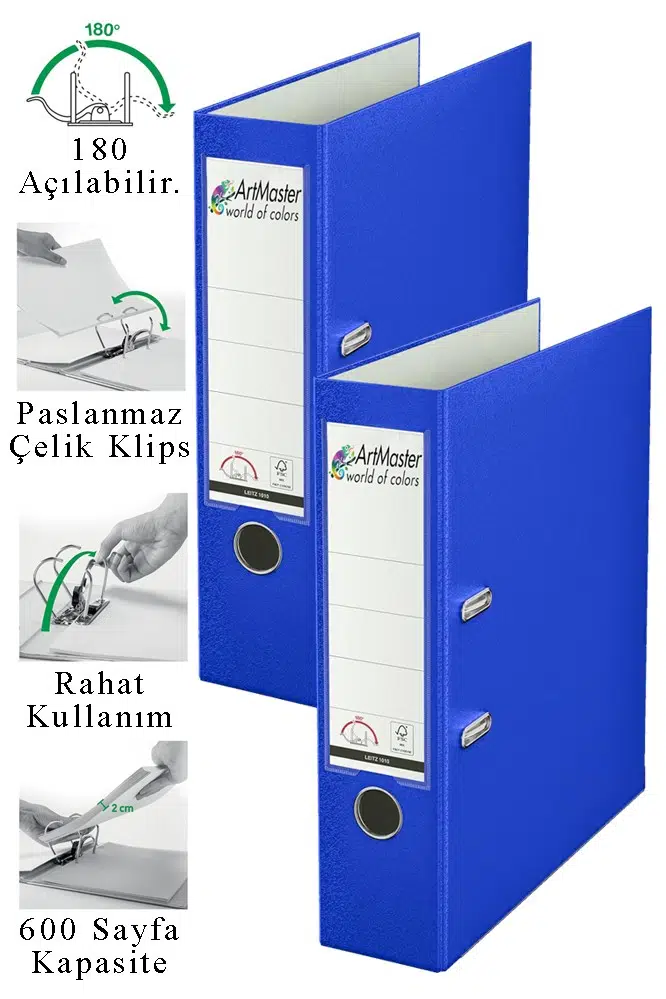 Ürün Adı: Artmaster Büro Klasörü Mavi Geniş 2 Adet Plastik Geniş Mavi Klasör Halkalı Paslanmaz Çelik Klipsli Ofis Büro