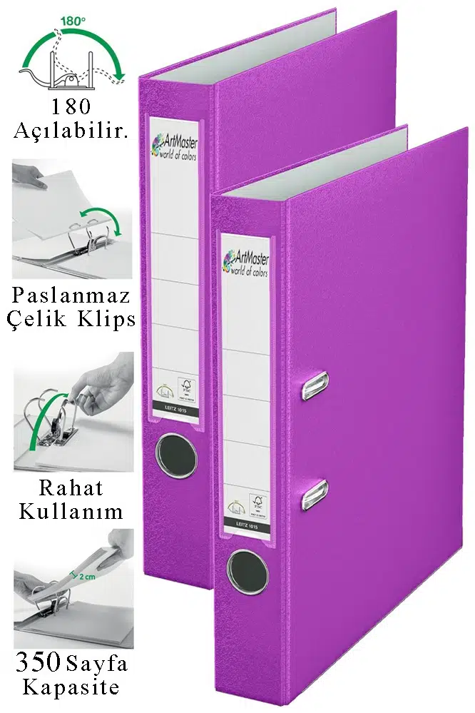 Ürün Adı: Büro Klasörü Mor Dar 2 Adet Plastik Dar Mor Klasör Halkalı Paslanmaz Çelik Klipsli Ofis Büro