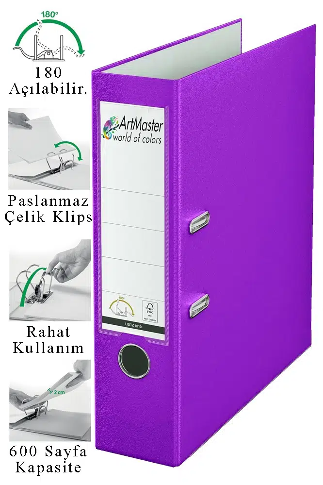 Ürün Adı: Büro Klasörü Mor Geniş 1 Adet Plastik Geniş Mor Klasör Halkalı Paslanmaz Çelik Klipsli Ofis Büro
