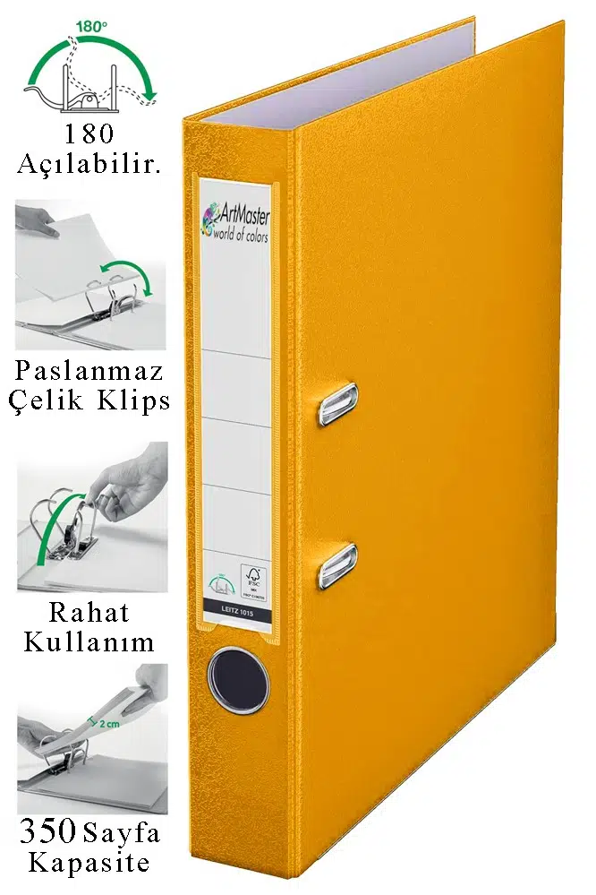 Ürün Adı: Artmaster Büro Klasörü Sarı Dar 1 Adet Plastik Dar Sarı Klasör Halkalı Paslanmaz Çelik Klipsli Ofis Büro