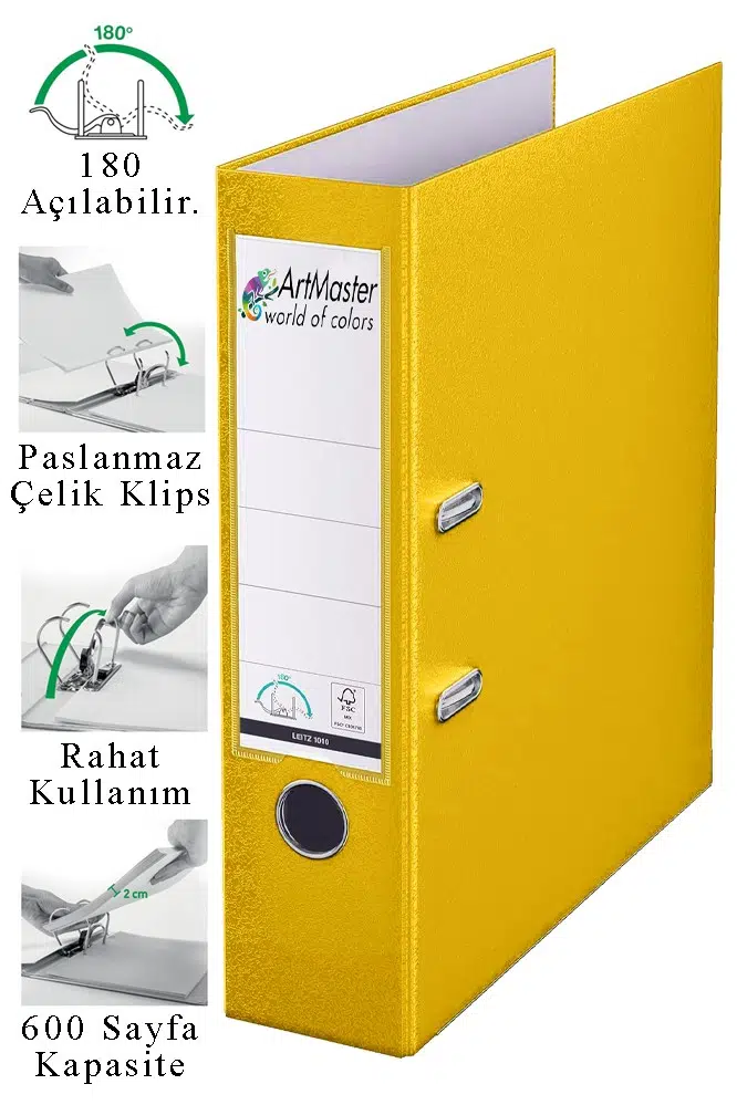 Ürün Adı: Artmaster Büro Klasörü Sarı Geniş 1 Adet Plastik Geniş Sarı Klasör Halkalı Paslanmaz Çelik Klipsli Ofis Büro