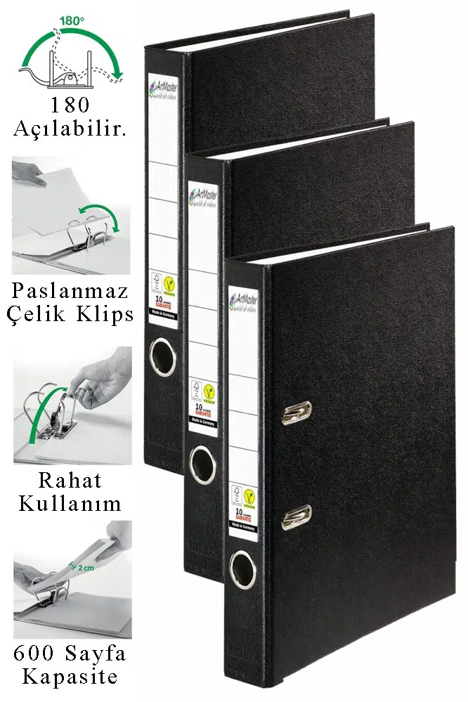 Ürün Adı: Artmaster Büro Klasörü Siyah Dar 3 Adet Plastik Dar Siyah Klasör Halkalı Paslanmaz Çelik Klipsli Ofis Büro