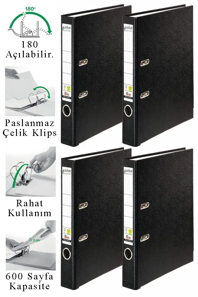 Ürün Adı: Artmaster Büro Klasörü Siyah Dar 4 Adet Plastik Dar Siyah Klasör Halkalı Paslanmaz Çelik Klipsli Ofis Büro