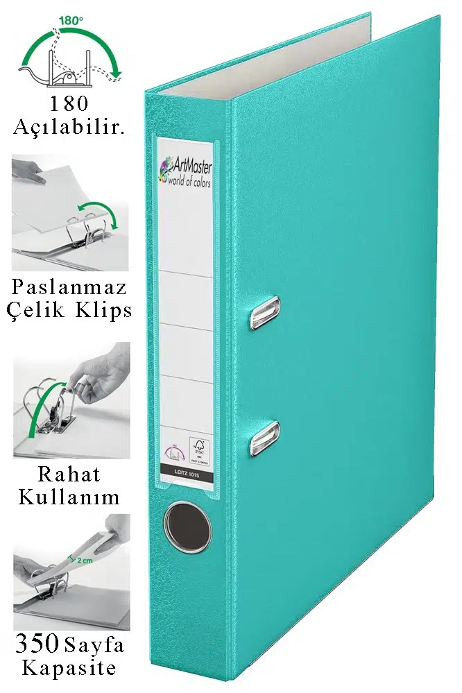 Ürün Adı: Artmaster Büro Klasörü Turkuaz Dar 1 Adet Plastik Dar Turkuaz Klasör Halkalı Paslanmaz Çelik Klipsli Ofis Büro
