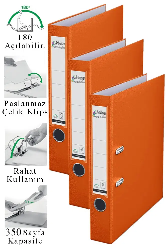 Ürün Adı: Artmaster Büro Klasörü Turuncu Dar 3 Adet Plastik Dar Turuncu Klasör Halkalı Paslanmaz Çelik Klipsli Ofis Büro