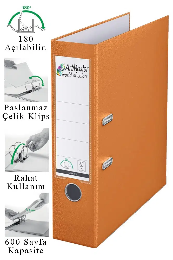 Ürün Adı: Artmaster Büro Klasörü Turuncu Geniş 1 Adet Plastik Geniş Turuncu Klasör Halkalı Paslanmaz Çelik Klipsli Ofis Büro