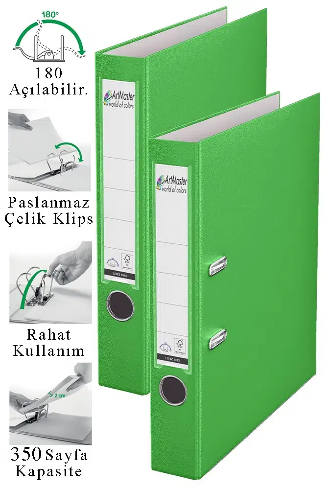 Ürün Adı: Artmaster Büro Klasörü Yeşil Dar 2 Adet Plastik Dar Yeşil Klasör Halkalı Paslanmaz Çelik Klipsli Ofis Büro