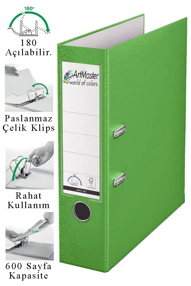 Ürün Adı: Artmaster Büro Klasörü Yeşil Geniş 1 Adet Plastik Geniş Yeşil Klasör Halkalı Paslanmaz Çelik Klipsli Ofis Büro