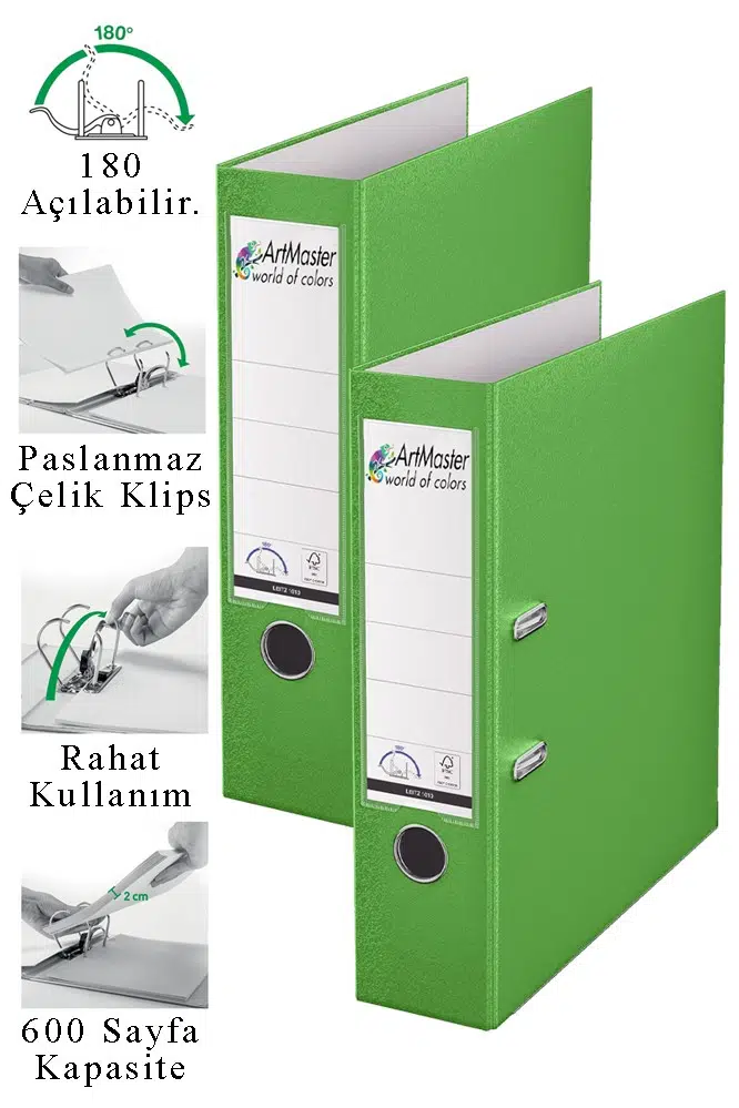 Ürün Adı: Artmaster Büro Klasörü Yeşil Geniş 2 Adet Plastik Geniş Yeşil Klasör Halkalı Paslanmaz Çelik Klipsli Ofis Büro
