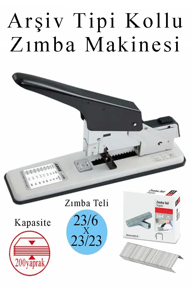Ürün Adı: Büyük Boy Zımba Makinesi 1 Adet Arşiv Tipi Zımba Makinası 200 Yaprak Kapasiteli Zımba Teli Hediyeli Kollu Zımba Makinası