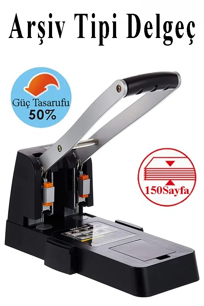 Ürün Adı: Büyük Delgeç 150 Yaprak Kapasiteli 1 Adet Arşiv Tipi Kollu Delgeç Metal Perfaratör Profesyonel Kağıt Delici Delgec