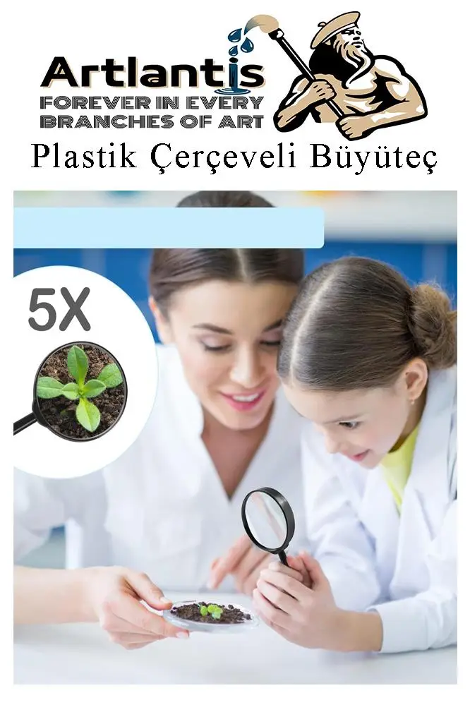 Ürün Adı: Büyüteç 75 mm 1 Adet 5x Plastik Sap Çerçeveli Büyüteç Merçek Okul Büro Ofis