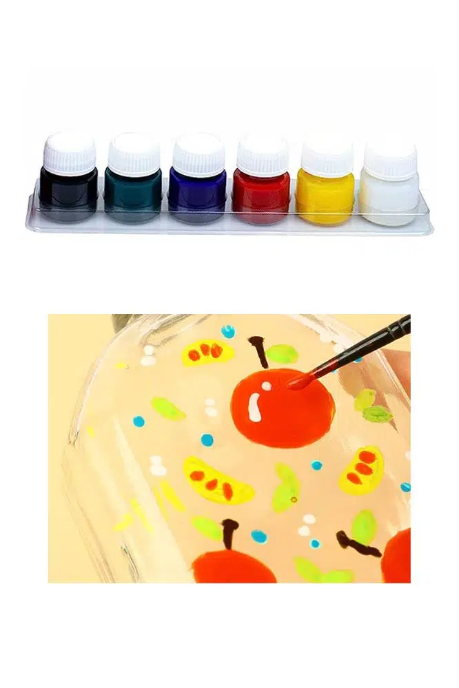 Ürün Adı: Cam Boyası 6 Lı 15 ml 1 Paket 6 Renk Su Bazlı Cam Boyası 6x15 ml Cam Seramik Karton Kağıt Taş Boyama
