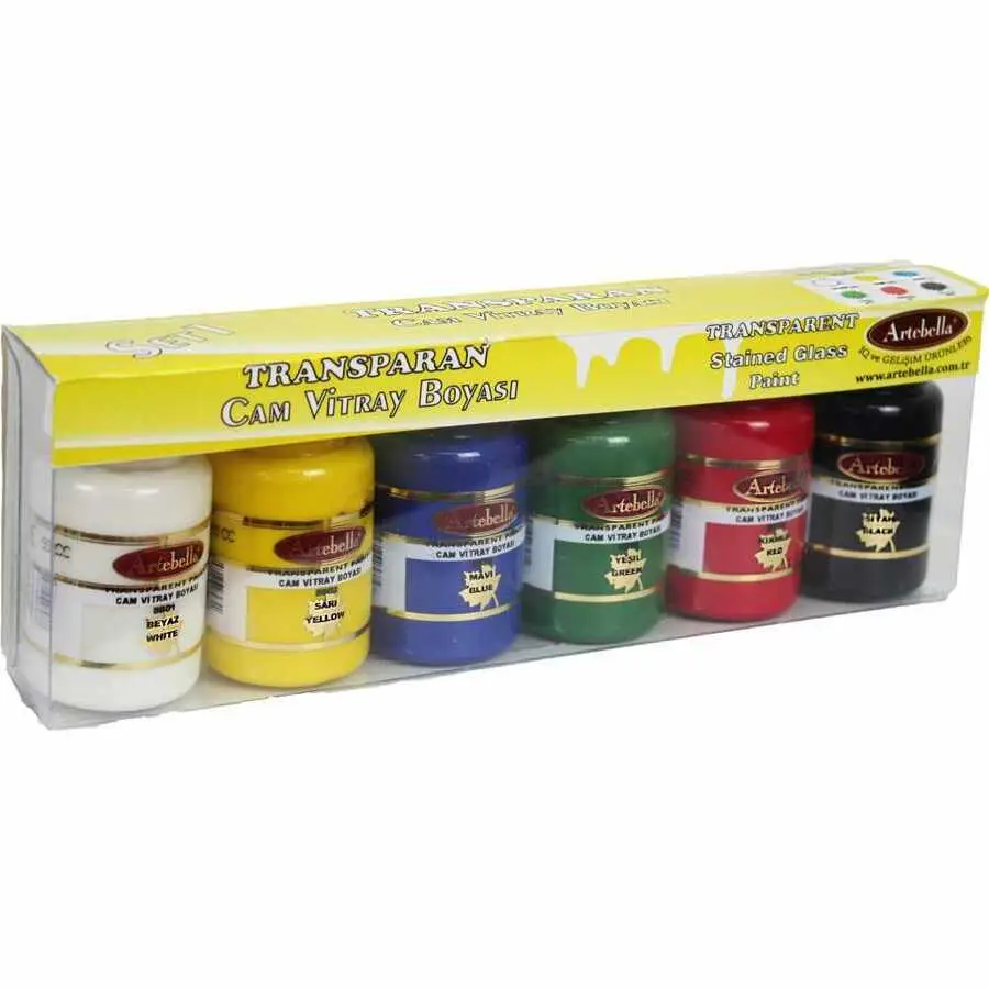 Cam Boyası Vitray Boyası Boya Seti 50 ml Artebella Transparan Cam Vitray Boyası ABSTC001 50 ml 6`ı Set - 1