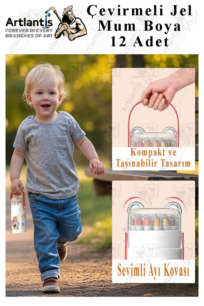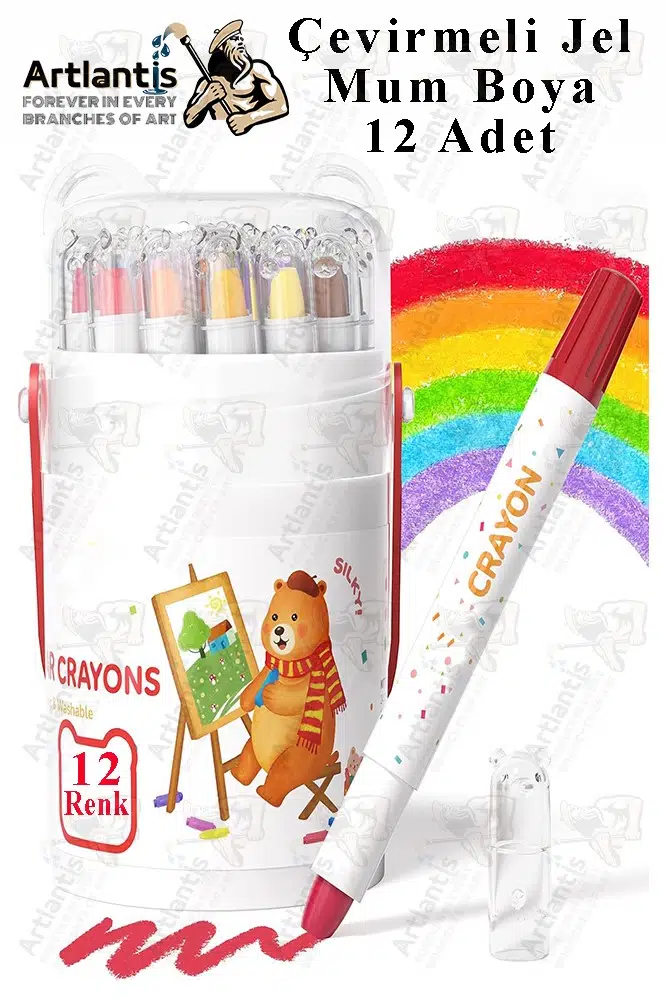 Ürün Adı: Çevirmeli Jel Mum Boya 12 Renk 1 Adet Plastik Kutulu 12 li Mum Boya Kalemi Silinebilir Zararsız Yıkanabilir