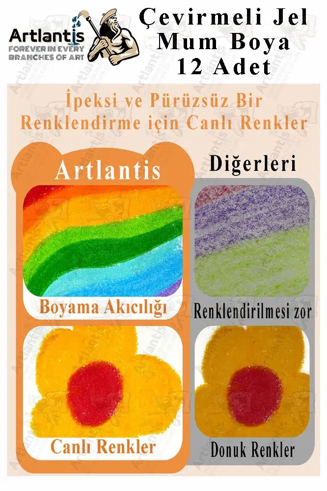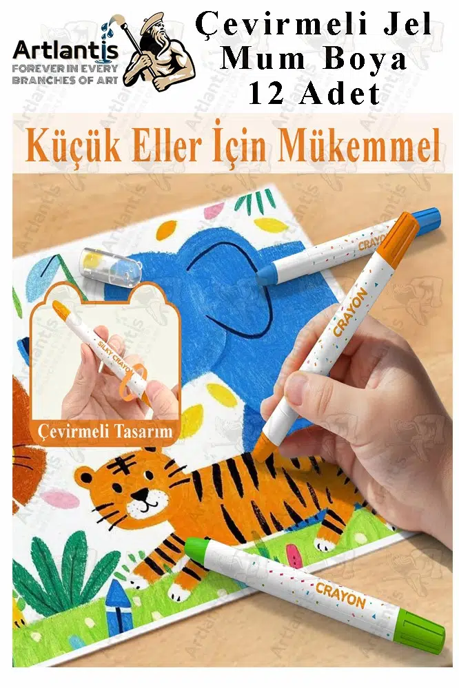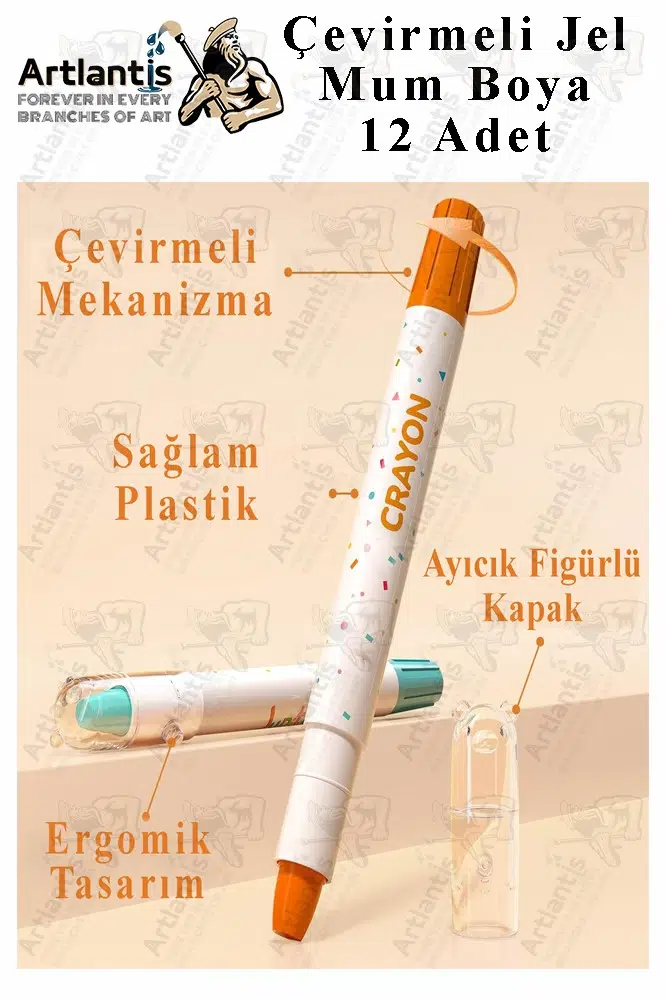 Çevirmeli mum boya 12 renk parlak renkler, küçük çocukların renkleri öğrenmesine, hayal güçlerini harekete geçirmesine ve yaratıcılıklarını geliştirmesine yardımcı olur; tüm sanatsal çalışmaları için mükemmeldir.