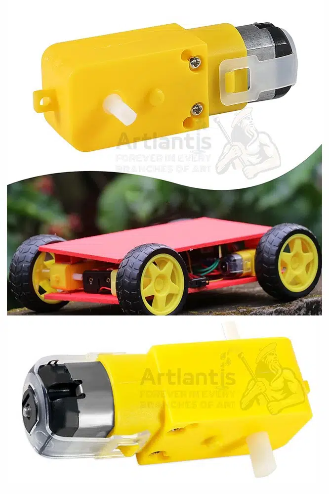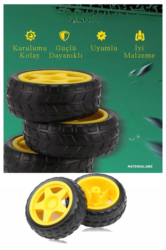 Ürün Adı: Çift Eksenli Motor 4 Adet ve Tekerlek 4 Adet Sarı Dc Motor Arduino Robotik Motor Tekerlek Deney Okul Bilim Araba Yapım