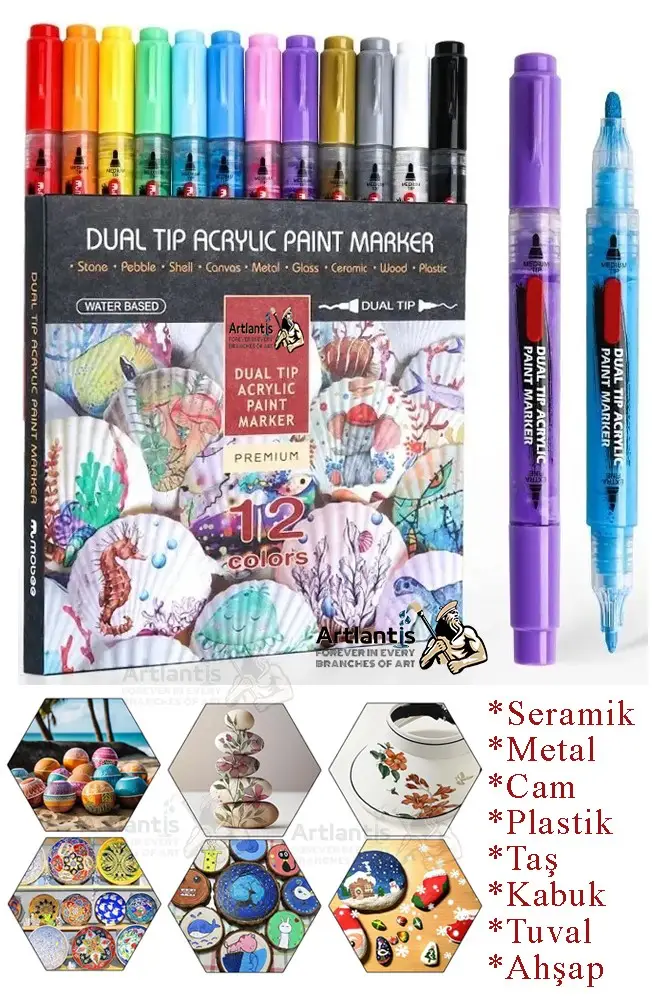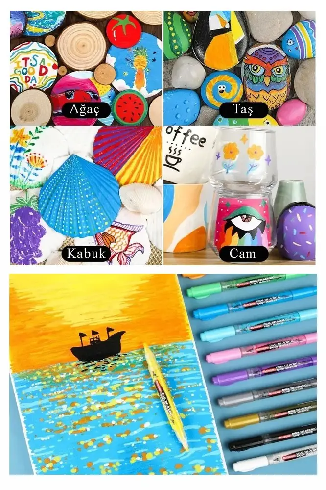 | Etiketler | Çift Taraflı 12 Renk Akrilik Markör Keçeli Kalem 1 Adet Dual Tip Acrylic Marker Taş Cam Metal Seramik Plastik Tuval |