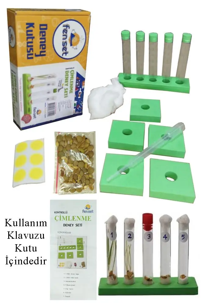 Fenset Kontrollü Çimlenme Eğitici Deney Seti Milli eğitim müfredatlarına uygun teknoloji ve fen derslerin de kullanabileceğiniz harika yardımcı bir deney seti.Bitkilerin yetişme koşullarını, hangi hava ve çevre şartlarında daha verimli olduğunu gözlemleyerek öğrenebileceğiniz öğretici bir deney seti.Deney içeriği Birden başlayarak beşe kadar bütün deney tüpleri tekli kaideler üzerine yerleştirilir.