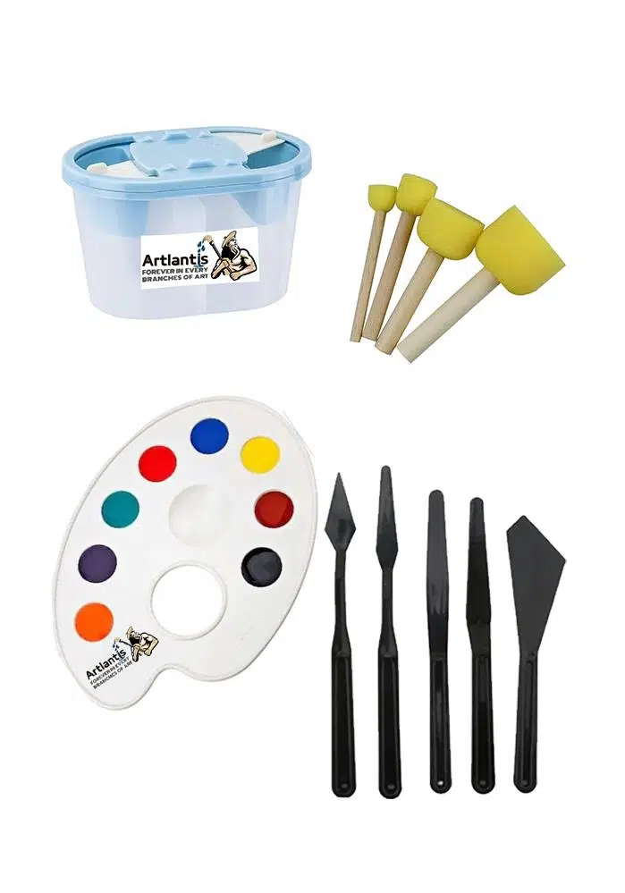 - Artlantis resim paleti, fırça temizleme kabı ve 4 adet ponpon fırça seti