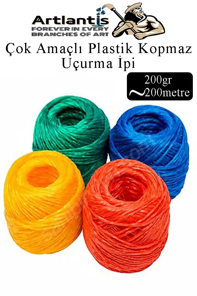 Ürün Adı: Çok Amaçlı Plastik Kopmaz Uçurtma İpi Çamaşır İpi 4 Adet Renkli 200 Metre Naylon İp Çırpı İpi Çizim İnşaat Duvar İpi